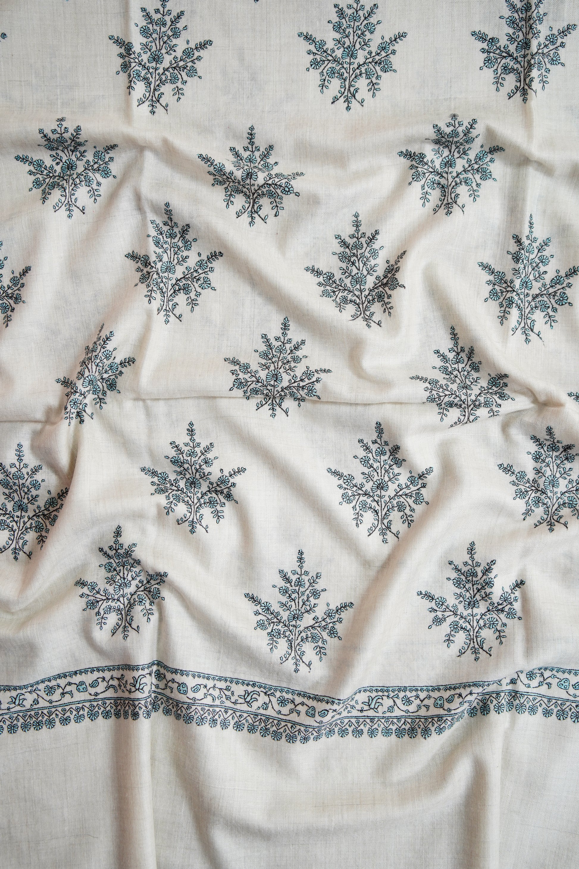Patiently created by master artisans, every shawl is the result of months of devoted craftsmanship, where fine threads transform into poetry. The intricate motifs echo centuries of Kashmiri heritage—each stitch preserving a legacy, each pattern telling a story of tradition and pride.