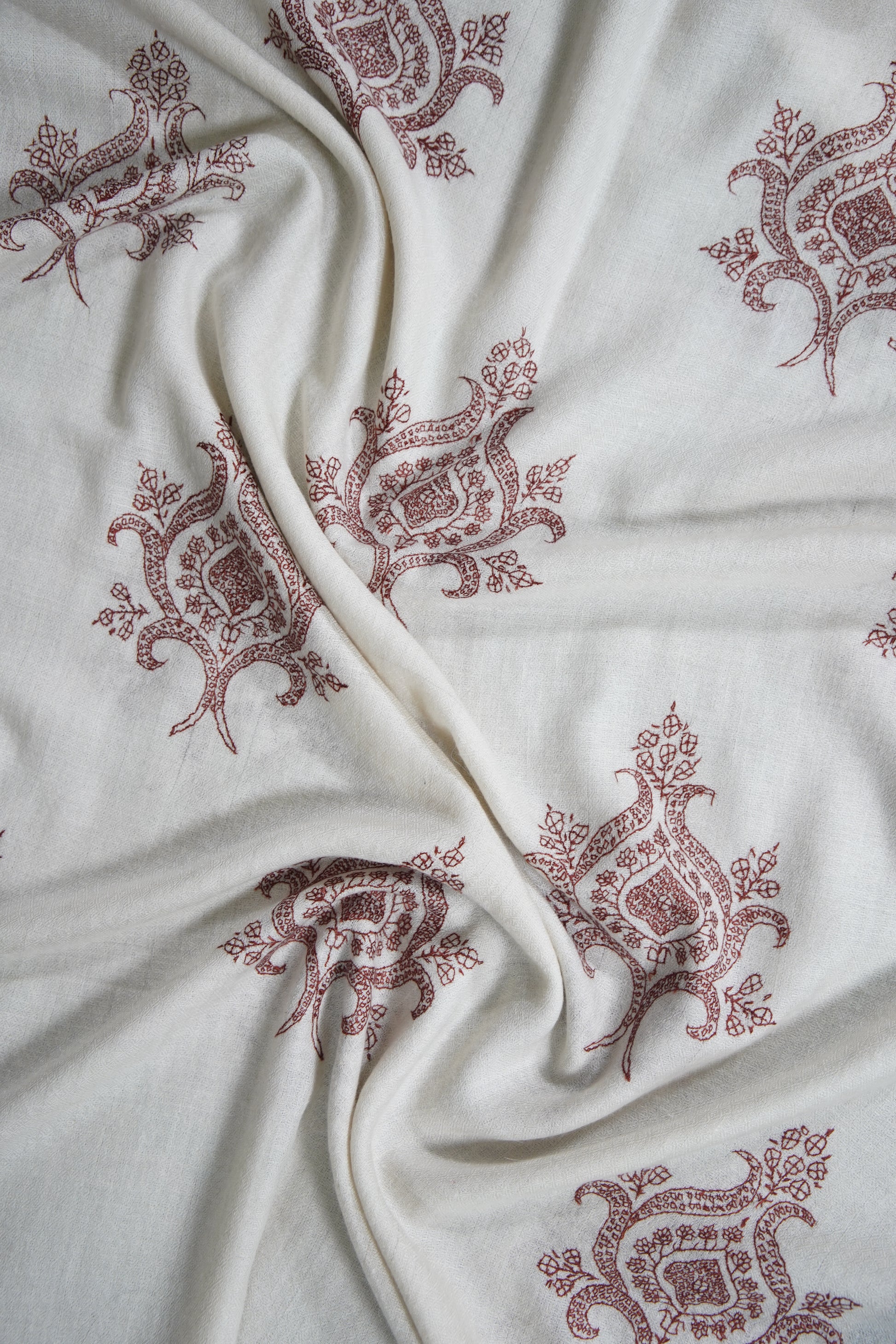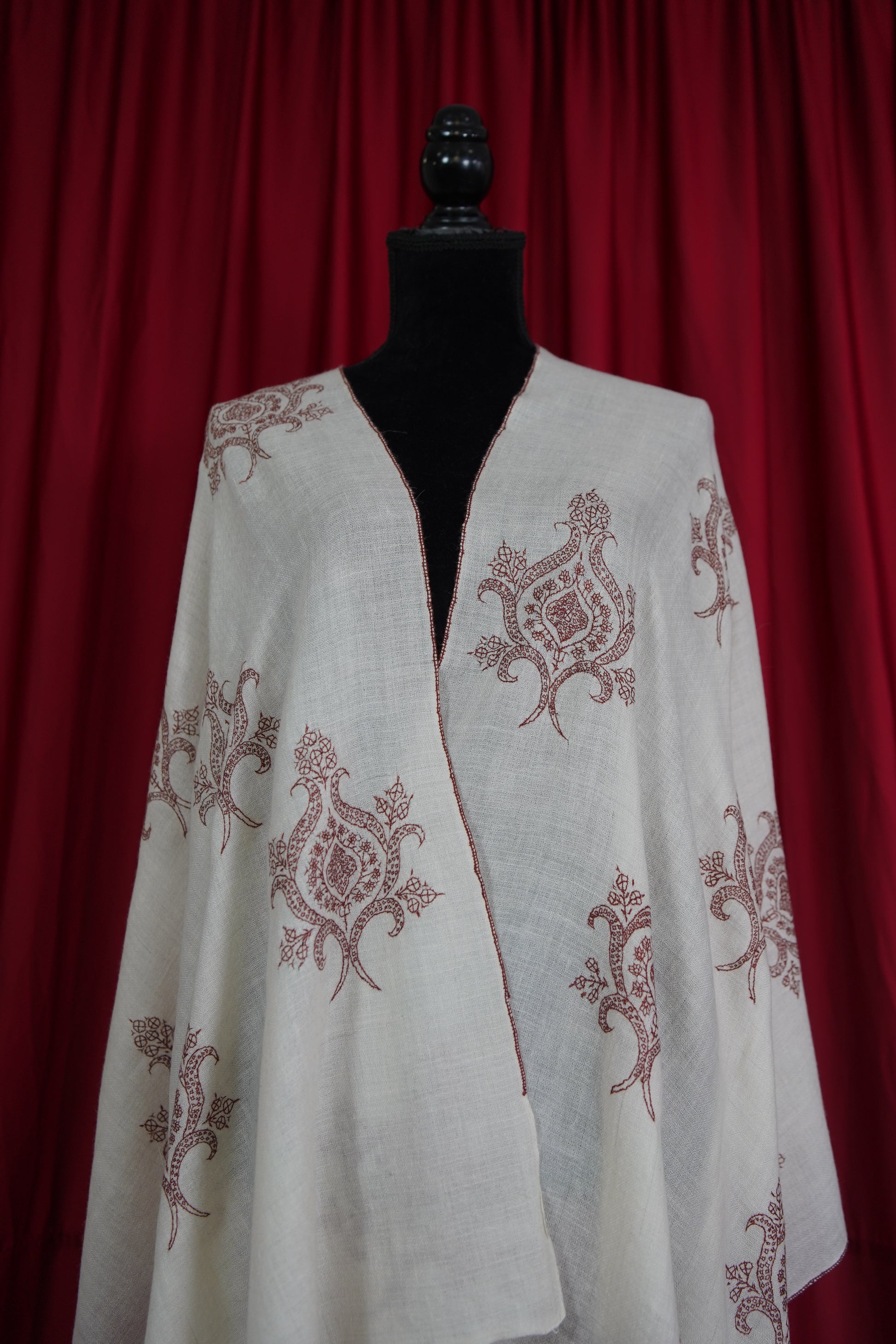 Elegantly hand-embroidered by skilled artisans, each stole features timeless Kashmiri motifs stitched with precision. The embroidery process can take weeks or even months, making every piece a testament to patience and heritage.